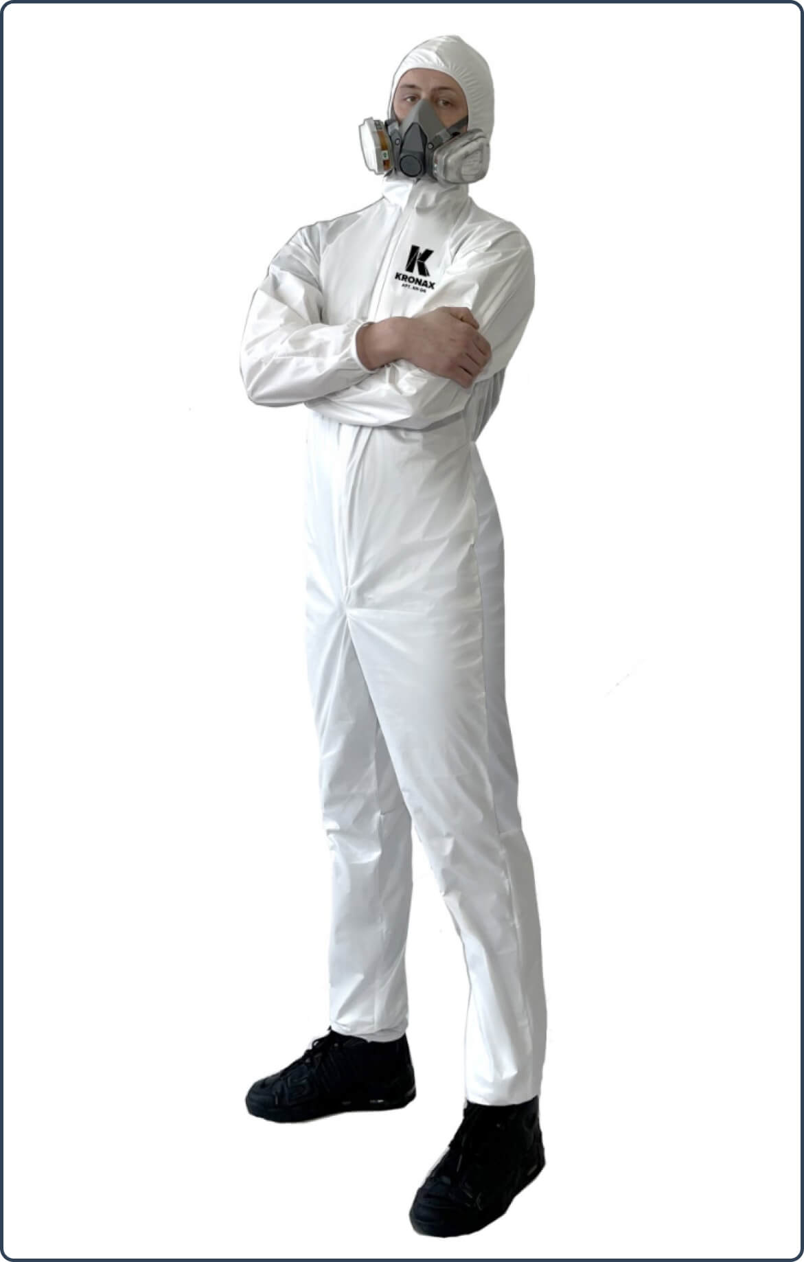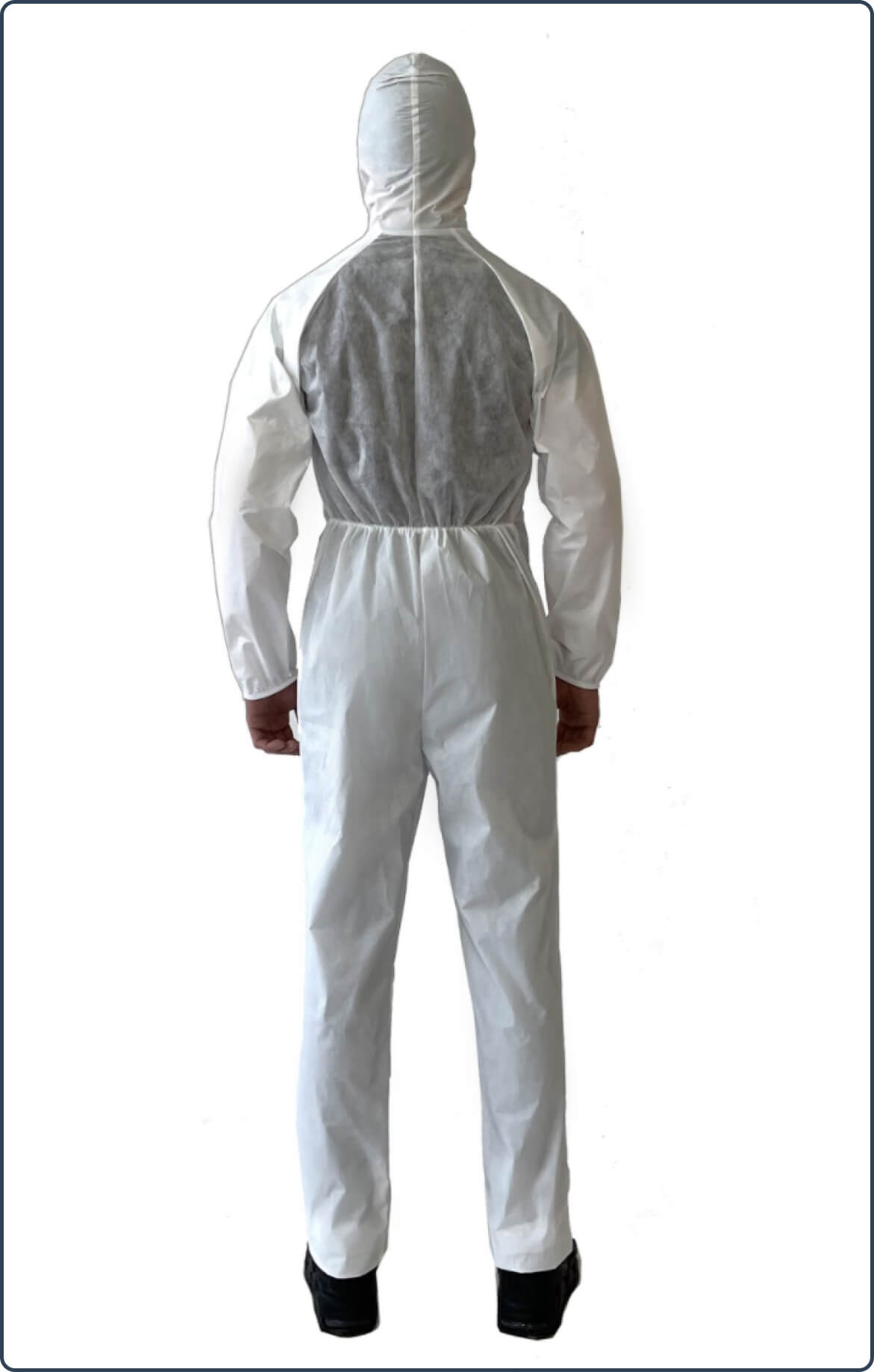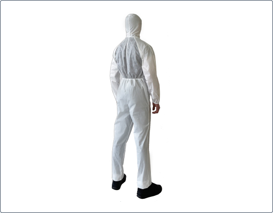 Техническое описание: Комбинезон защитный из нетканого материала от общих механических воздействий, воды (струи воды), нетаксичной пыли, от электростатических полей, от общих загрязнений.